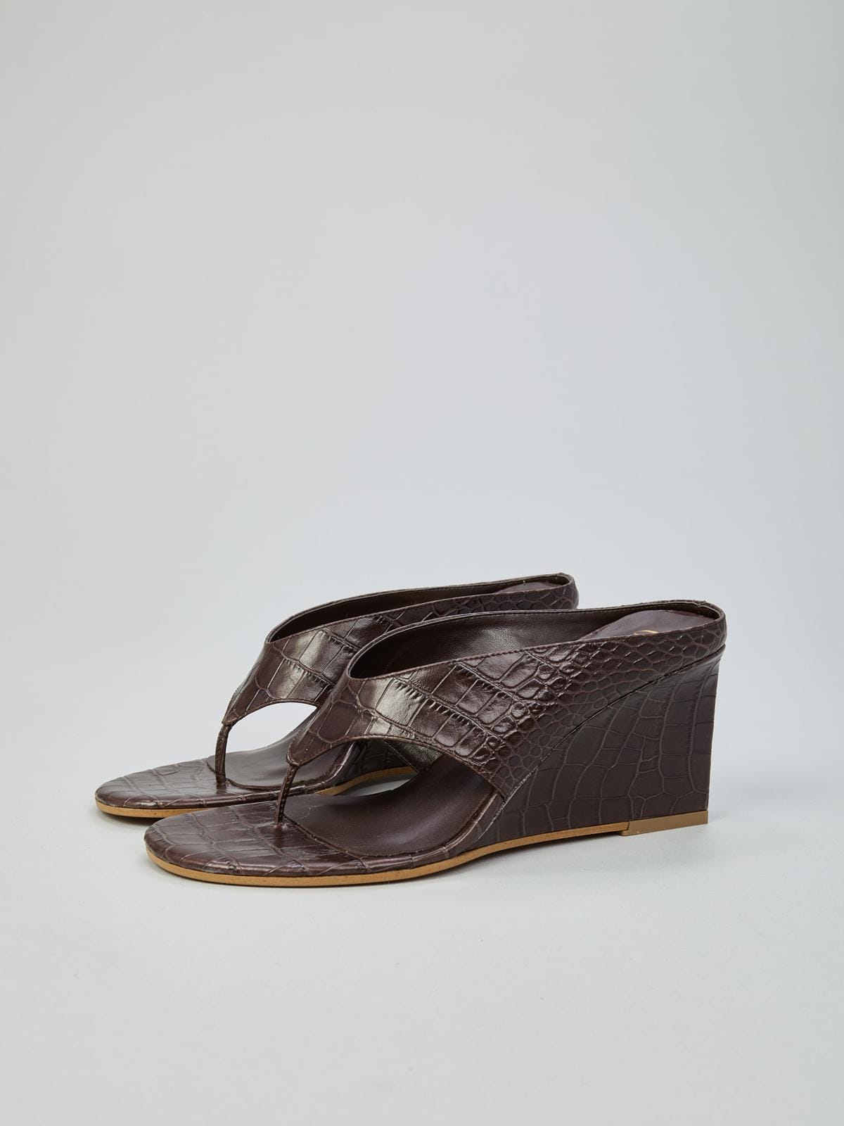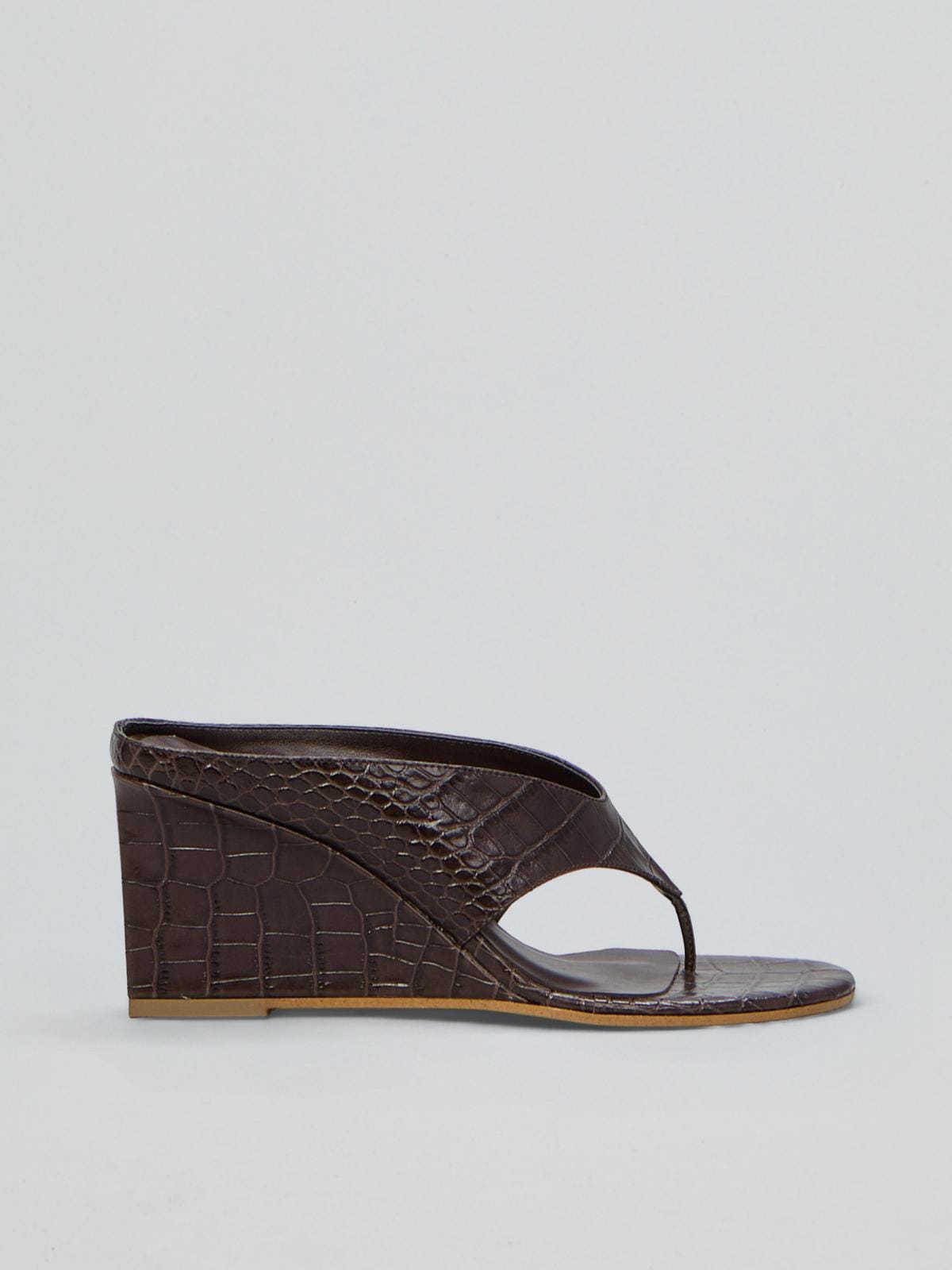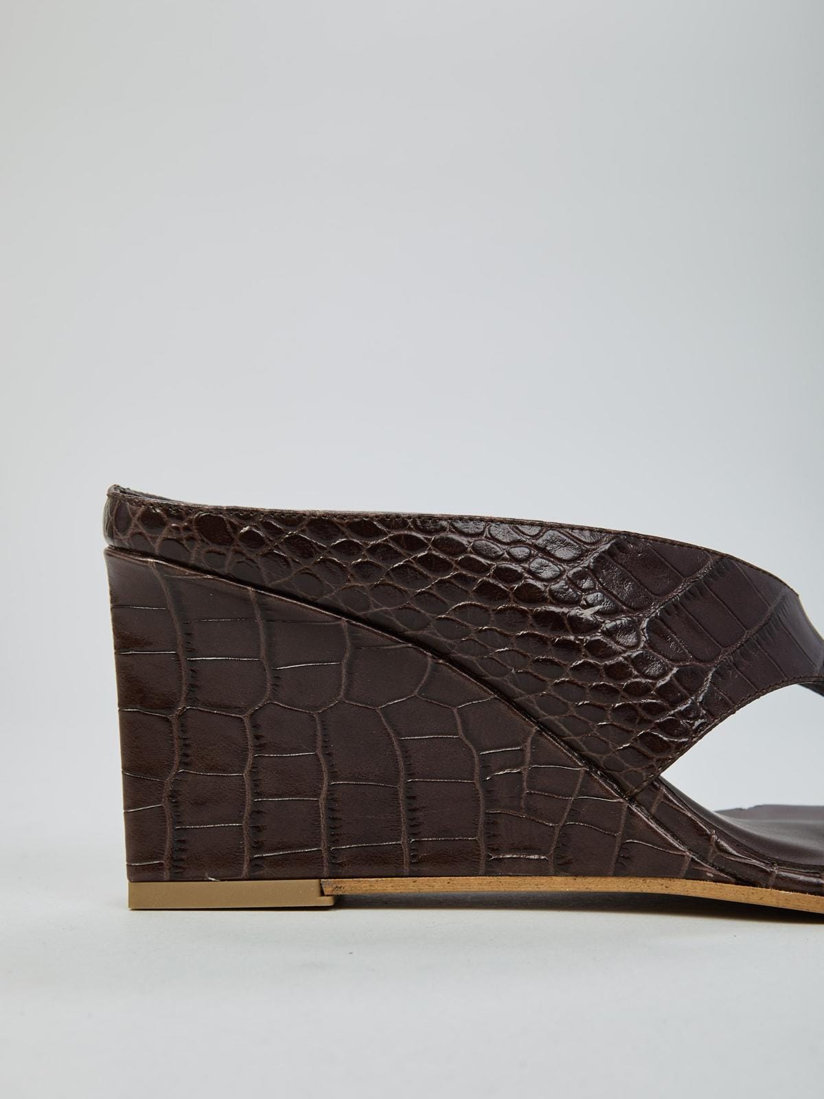 כפכפי עור קרוקו חום כהה עקב 7 ס״מ